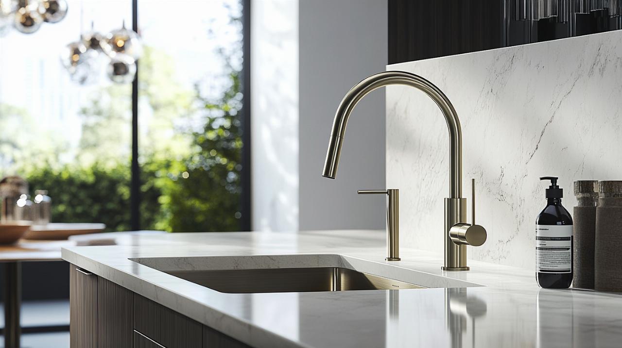 L'esthétique épurée domine largement les préférences actuelles en matière de robinetterie de cuisine. Les formes géométriques simples et les lignes fluides créent une impression de sobriété élégante qui s'inscrit parfaitement dans les intérieurs contemporains. Le noir mat s'impose comme la finition vedette avec son caractère intemporel et sa capacité à apporter instantanément sophistication et personnalité. Cette teinte se marie harmonieusement avec un style industriel comme avec un décor minimaliste. Elle présente l'avantage pratique de masquer efficacement les traces de doigts et les éclaboussures, facilitant ainsi l'entretien quotidien. L'acier inoxydable demeure également un choix prisé pour sa résistance et sa capacité à s'adapter à tous les environnements. Les finitions dorées connaissent un regain d'intérêt marqué en apportant une touche de luxe et de chaleur à la cuisine. Qu'elles soient polies et brillantes ou déclinées en laiton brossé pour une apparence plus douce, ces teintes se marient admirablement avec des matériaux naturels comme le bois ou la pierre. Les nuances cuivre rosé et bronze gagnent également en popularité grâce à leur charme vintage distinctif. Pour créer une harmonie visuelle réussie, il convient d'assortir la finition du robinet avec celle des poignées d'armoires et des luminaires présents dans la pièce.